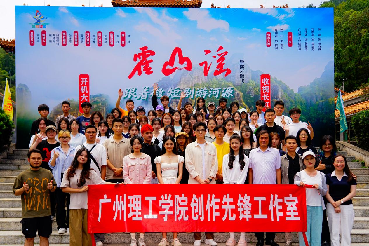 6月6日,《霍山谣》开机仪式在河源市龙川县霍山风景区隆重举行,广州理工学院党委书记黄圣诚、常务副校长伏焕昌,人文教育学院、音乐舞蹈学院、双创学院相关领导以及工作室师生代表共同出席。仪式由音乐舞蹈学院李丽丹副院长主持,李绍威老师演唱客家山歌《开门红》点燃现场氛围,刘志远、林诗、肖垴姿、吴翎薇、江什等学生主演集体亮相,标志着项目正式进入拍摄阶段。