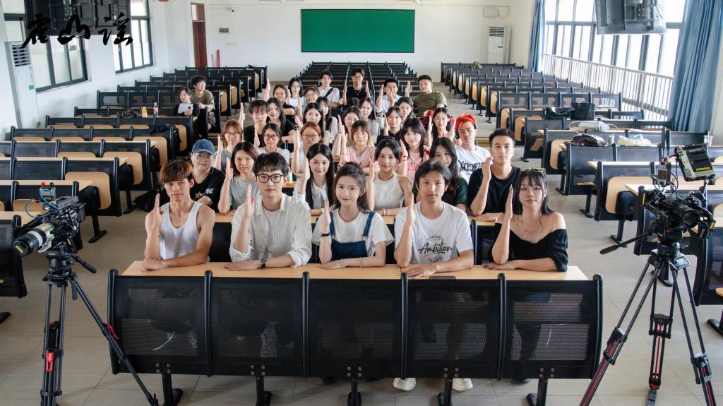 回溯项目历程,从筹备到杀青的每一步都凝聚着广理师生的心血。5月22日,人文与教育学院创作先锋工作室率先召开编剧工作推进会,师生围绕剧本框架、内容创作展开深入研讨;为让剧情与地方特色深度契合,团队还专程前往霍山景区考察环境与文化底蕴,完成选址取景工作;拍摄前期,工作室组织专项表演培训,助力师生打磨演技、熟悉角色。