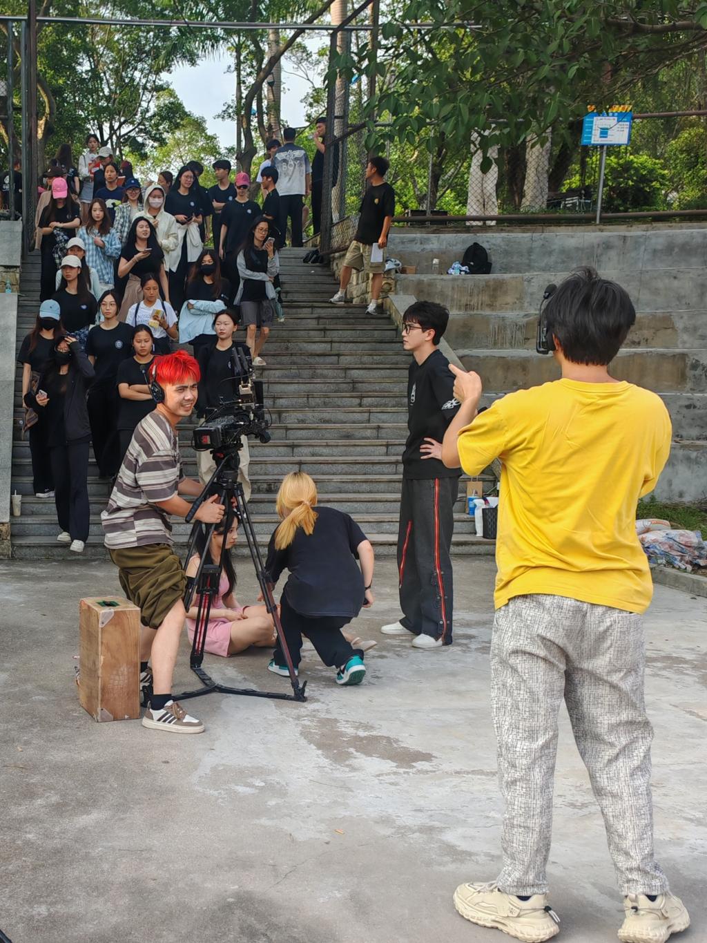 拍摄与制作期间,广理师生全流程深度参与,以“项目即课堂、实践即教学”的模式锤炼专业能力。创作先锋工作室师生不仅主导剧本创作,还投身摄影、剪辑等后期环节,将影视制作理论转化为实战操作;艺术先锋工作室组建13人师生演员团队,副院长李丽丹、王恺,李绍威老师等担任表演指导,并亲自参演与学生搭档完成镜头拍摄。其中,刘志远同学饰演男二号“霍清河”,其他学生演员也凭借扎实的表演功底,塑造出鲜活的角色形象。这种“师生同台、协同创新”的模式,打破传统教学边界,让师生在真实产业项目中提升团队协作能力与专业素养,生动践行了学校“学用心志,行知诚明”的教育理念。