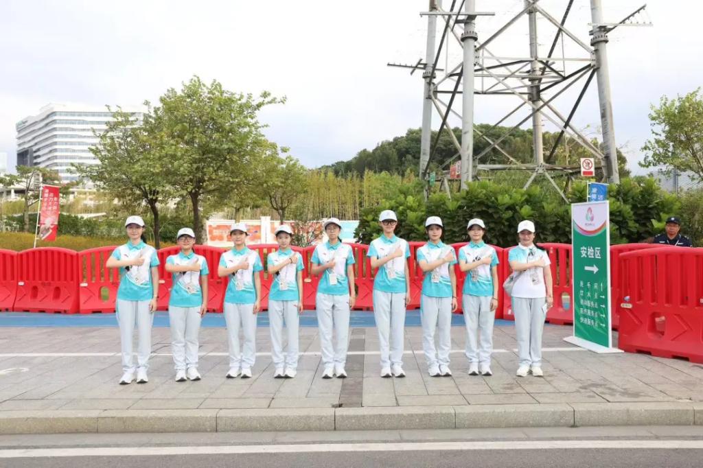 截至目前,学校学生注册服务十五运会及残特奥会志愿者共计146名。至11月9日,十五运会白云抵离站点学校累计上岗志愿者73人次,共接待航班(高铁)44车次、运动队1支、运动员95人,贵宾22人,团部官员12人,技术官员1名,“双先”代表8人,媒体记者11人,团队累计服务时长47小时。评选每日之星、每周之星、赛会服务之星等优秀志愿者共计28人。学校志愿者主要服务广州白云站接待服务以及苏元站远端集结点引导工作。苏元地铁站作为十五运会开幕式远端集结与安检枢纽之一,志愿者们以饱满热情和专业素养践行志愿精神,参与开幕式远端集结点的演练,为奥林匹克体育馆主会场提供了“安全前置、高效分流”的保障服务。