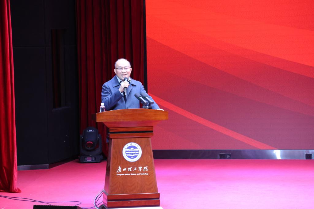 12月29日下午,首场大会在广州白云校区工程楼3号报告厅举行,由曾梓洋、吴嘉瑜同学主持。党委书记黄圣诚,党委副书记、副校长张志红,校长助理、招生与就业处处长唐成龙出席大会。