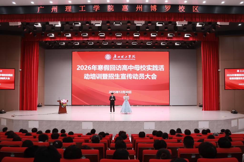 为凝聚师生力量,提升招生宣传实效,12月29日至30日,我校分别在广州白云校区工程楼3号报告厅及惠州博罗校区大礼堂召开2026年寒假回访高中母校实践活动培训暨招生宣传动员大会。两场会议联动推进,师生广泛参与,来自各学院的招生宣传相关人员、各片区招生人员及学生寒访志愿者齐聚一堂,共同为即将开展的寒假回访高中母校实践活动蓄力赋能。