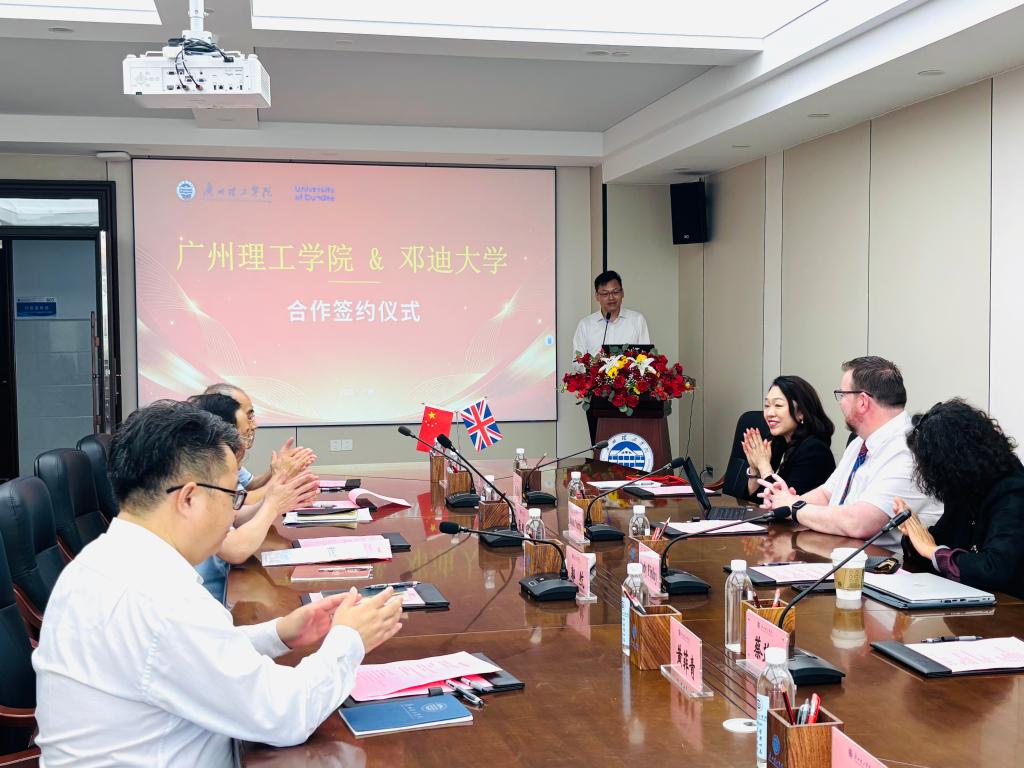 3月25日,英国邓迪大学全球合作与学生发展总监Jason Norris、中国区总监Judy Finlay率团访问我校,双方举行合作签约仪式。学校副校长张日新,科研管理部部长崔怀林,学校办公室主任黄菲青,国际交流合作处处长、国际教育学院院长郭航及相关部门负责人出席仪式,教师代表参加仪式。合作签约仪式由郭航主持。