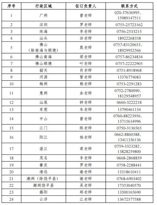 (一)单位、团体可联系对应行政区域征订负责人报订,联系方式如下: