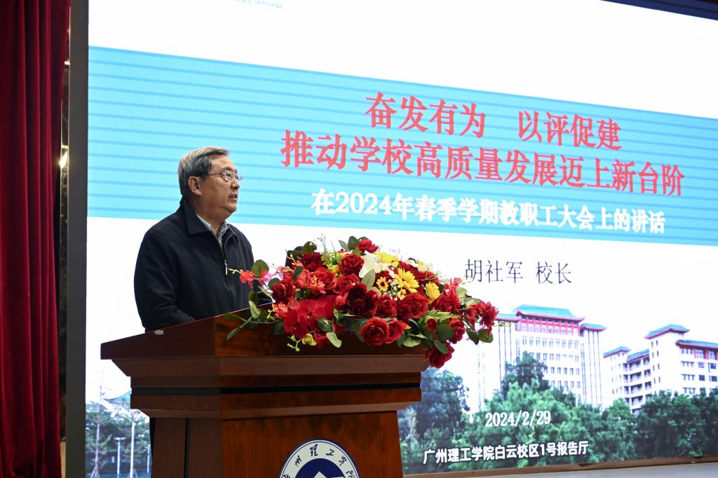 新学期,新气象,新征程,2024年,是学校全面贯彻党的二十大精神、落实学校第一次党代会目标任务、推进本科教学工作合格评估、持续推动高质量发展的关键之年。全体教职工将不负春光、起而行之,以时不我待的精神与龙腾虎跃的干劲投入新一年的工作与学习,以积极作为的新举措开创学校以评促建工作新局面,谱写学校高质量发展新篇章。
